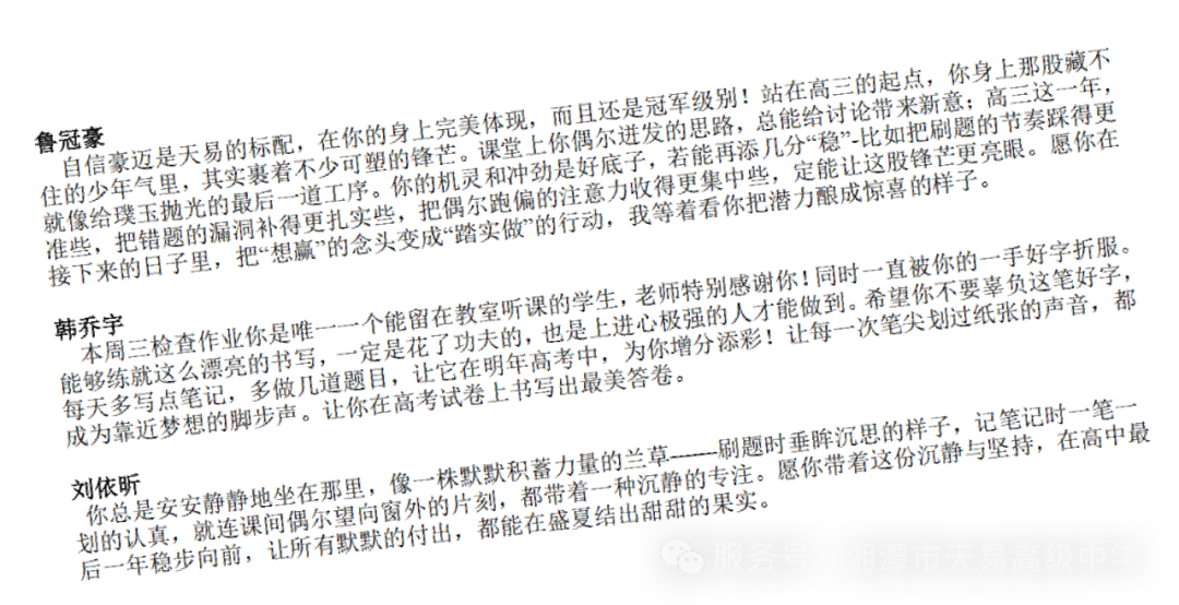 探究良好的教学方法和班级管理方法永无止境,天易高级中学管理团队和全体老师将一如既往,在不断创新、学习的基础上,各司其职、各尽所能,开展多种方式互相交流学习,力图打造一支更加优秀的教育教学团队,推动整体办学质量更上新台阶。